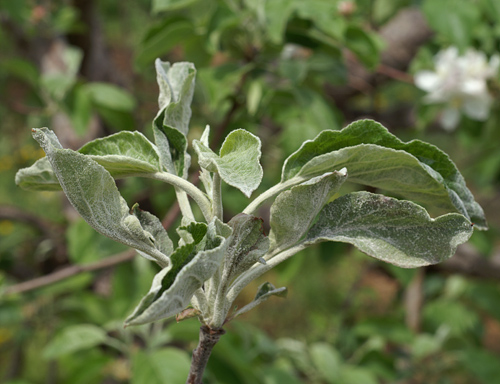سفیدک پودری (Powdery Mildew):سفیدک پودری گیاهان گوناگونی را گرفتار میکند و هنگامی که در درختهای سیب دیده میشود، ممکن است موجب کاهش تعداد گلها و تاخیر در رشد و لکه سیب شود. سفیدک پودری روی سیب به صورت یک کاور نرم و مخملی بر روی برگها و شاخه ها دیده میشود. این مشکل در ارقام مختلف سیب دیده میشود اما برخی ارقام آن بیشتر از سایرین مستعد هستند.